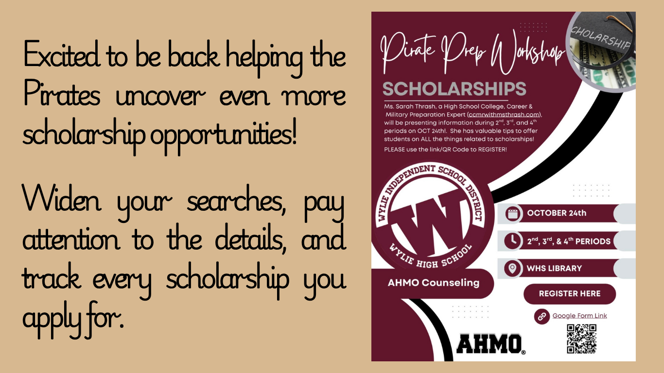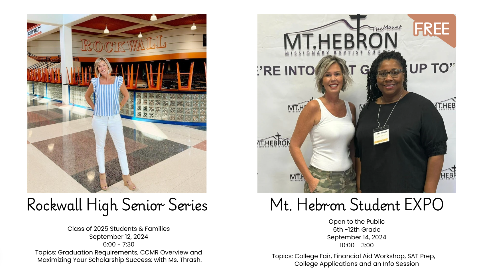 Topics: Graduation Requirements, CCMR Overview and Maximizing Your Scholarship Success: with Ms. Thrash.